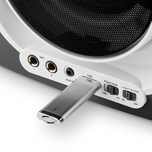 auna Kara Illumina Karaoke Anlage für Kinder (CD-Player, LED-Lichteffekt, USB-Port, 2 x Mikrofon) schwarz-weiß